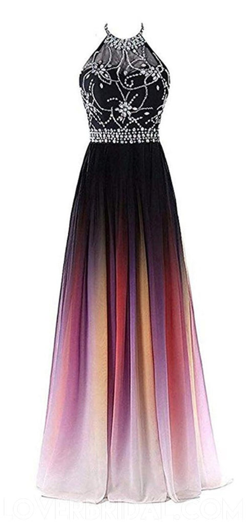 Halter Beaded Chiffon Ombre Long Evening Prom Dresses, Custom heap Sweet 16 Dresses, 18401
