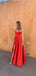 V Neck Simple Red A-line Long Evening Prom Dresses, Evening Party Prom Dresses, 12332