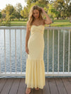 Yellow Chiffon Strapless Sweetheart Sheath Maxi Prom Dress, 26024